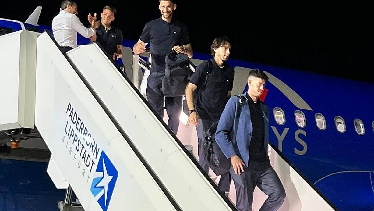 Nach ihrem dritten Gruppenspiel gegen Kroatien am Montagabend startete die „Squadra Azzurra“ vom Spielort Leipzig in Richtung Paderborn, um anschließend mit dem Bus in ihr Basecamp nach Iserlohn zu fahren. Noch beim Ausstieg aus dem Jet vom Typ Airbus A320 der ITA Airways war der Mannschaft die gute Laune anzusehen. Schließlich hatte sich das Team des amtierenden Europameisters in Leipzig durch einen Treffer in der achten Minute der Nachspielzeit ein 1:1 und damit die Qualifikation fürs Achtelfinale gesichert.
