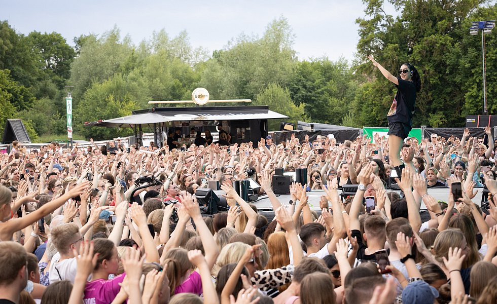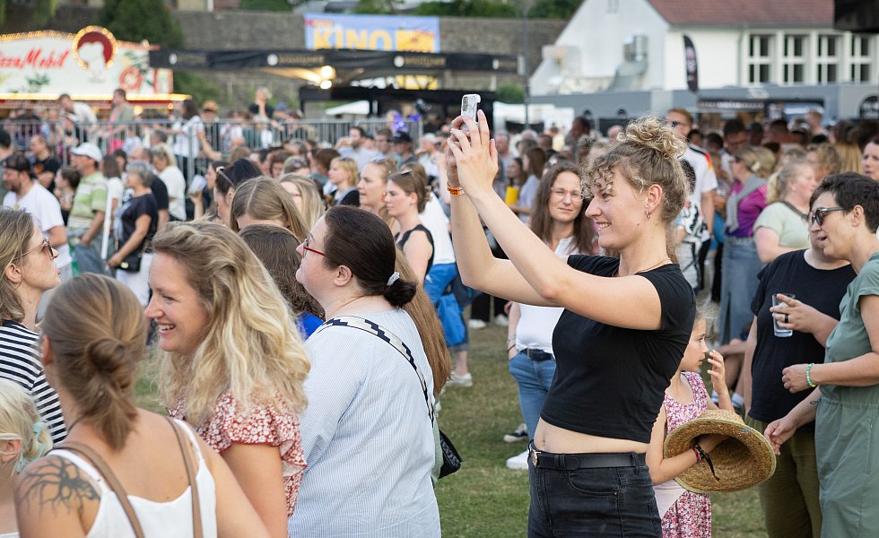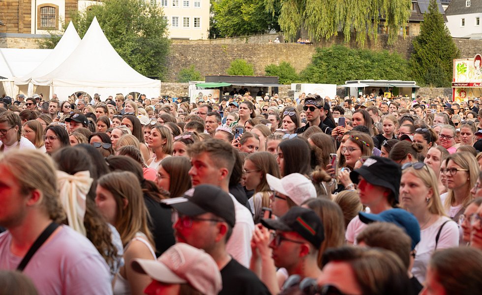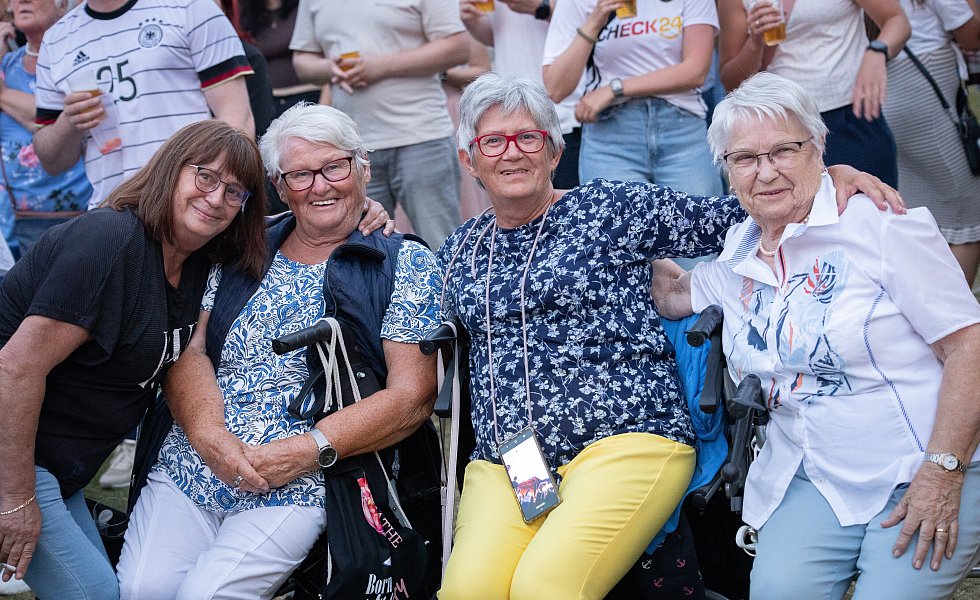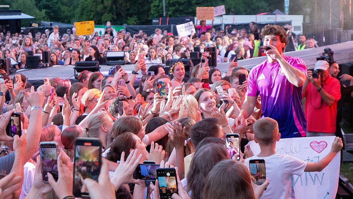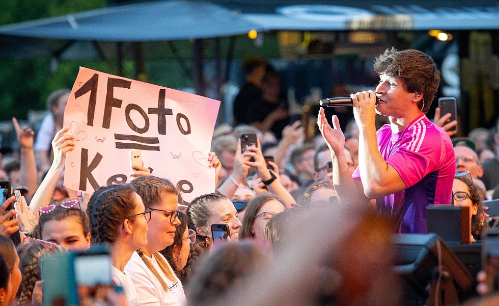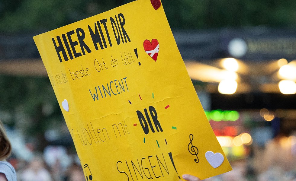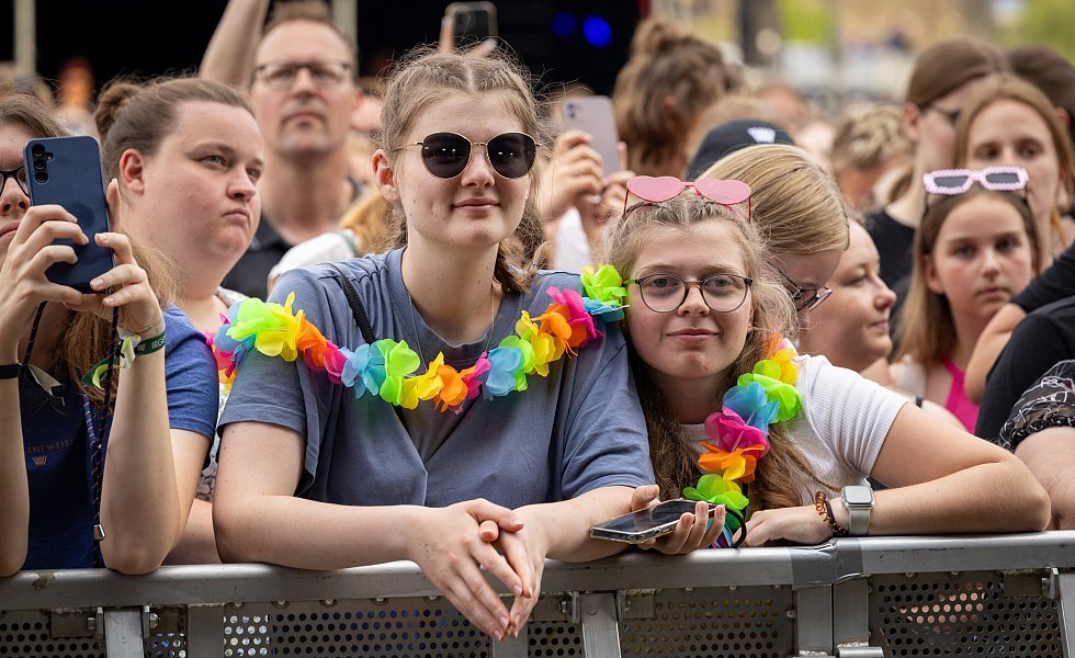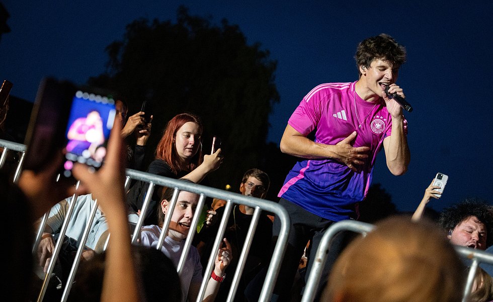 Die Besucher erleben zu Beginn Myller, Ness und Elif, die mit ihren Auftritten anheizen. Gegen 21.20 Uhr startet die Wincent-Weiss-Zeit, also kurz nachdem in Dortmund Anstoß zur EM-Achtelfinalpartie der Deutschen war. Mancher Fußball-Liveticker oder Livestream läuft nebenbei auf dem Handy. So wie bei Diana Schröter und ihren Freundinnen. „Wir sehen das so: Wenn Deutschland rausfliegt, haben wir nichts verpasst. Und wenn nicht, dann können wir mindestens noch ein Spiel schauen“, sagt Schröter.