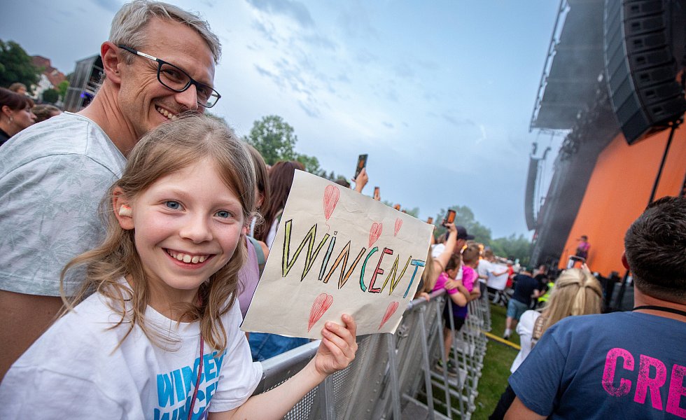 Die Schülerinnen besuchen das Konzert in Begleitung ihrer Eltern – inklusive der Väter, die wohl eher das Fußballspiel geschaut hätten. „Da weiß man, wer hier das Sagen hat“, so Vater Stefan Driller lachend. Bereits zu Weihnachten gab es die Tickets, als der Spielplan noch nicht feststand. „Ich finde, dass Wincent ein sympathischer Mensch ist“, sagt Linda.