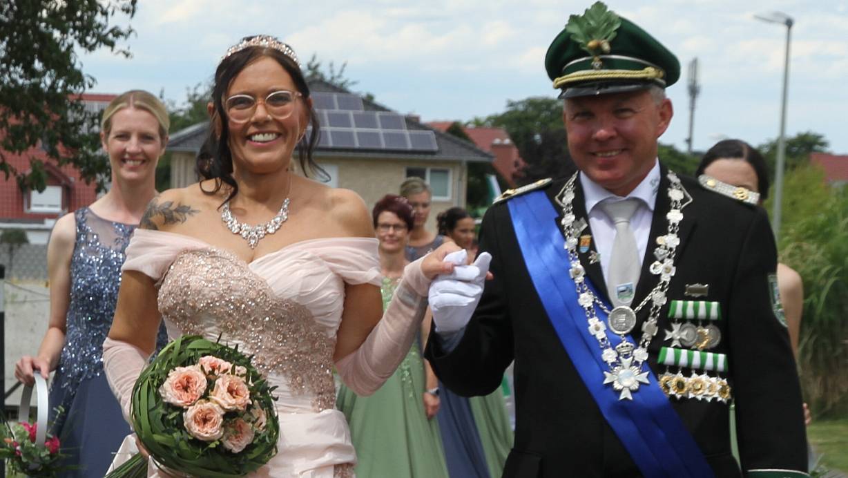 Bei der großen Schützenparade steht das Königspaar Rolf Neidereck und Nicole Solbach im Mittelpunkt.
