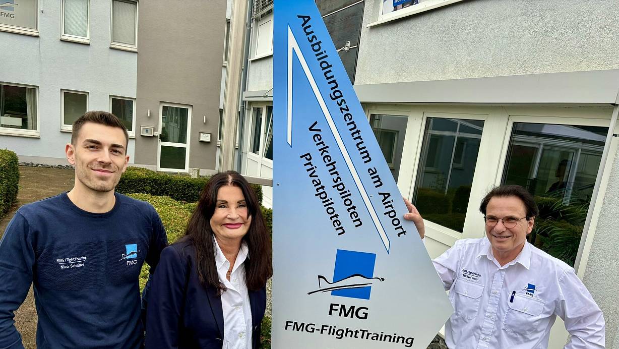 In der Flugschule von Michael Gross (r.) am Flughafen Paderborn/Lippstadt wird ausgebildet. Im Einsatz sind auch Vize-Geschäftsführerin Ruth Damann und Nico Schlüter (Operations und Marketing).. | © Jens Reddeker