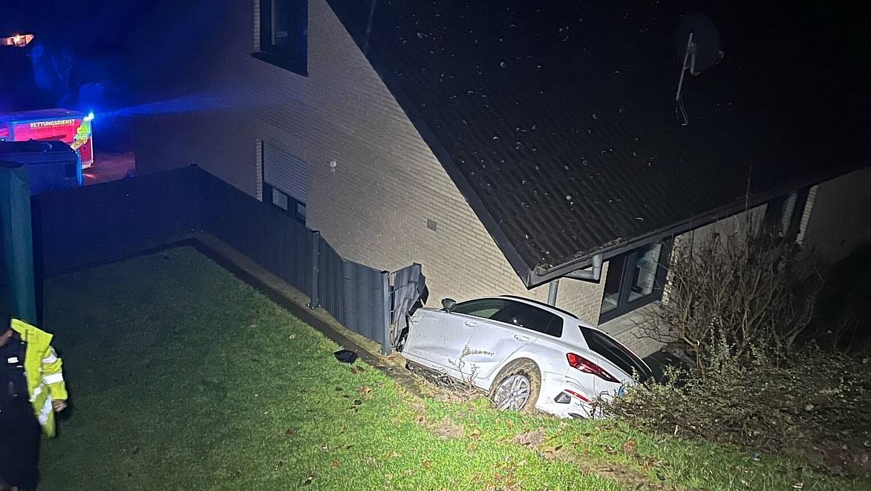 Beim Versuch, in dieser Sackgasse zu wenden, geriet sie auf den unmittelbar angrenzenden Steilhang und verlor hierbei die Kontrolle über ihren Audi. Sie rutschte mit dem Auto die Wiese herunter und prallte mit der Fahrzeugfront gegen ein Einfamilienhaus in der Straße Kamp.