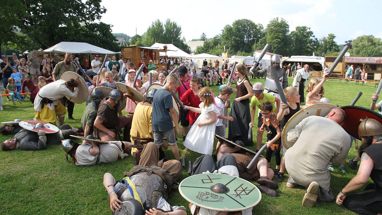 Die Almeauen verwandeln sich drei Tage lang in einen Mittelaltermarkt. Es wird viel geboten und Kinder besiegen sogar die Ritter.