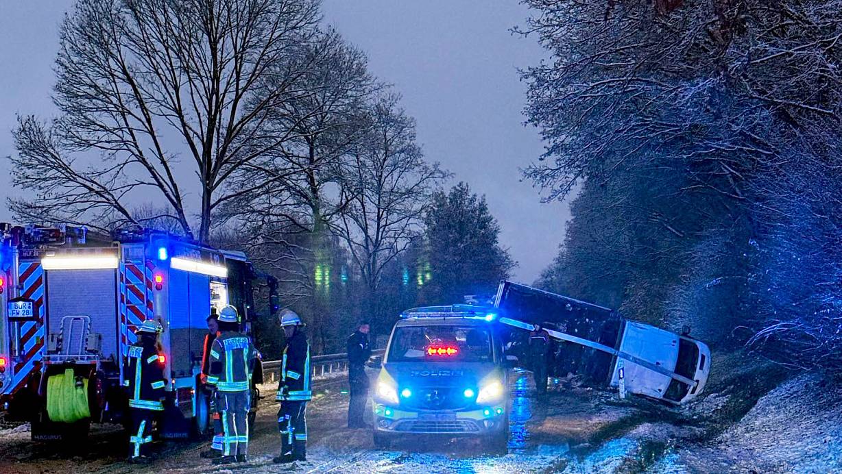 Büren-Hegensdorf. Auf schneeglatter Straße ist am Donnerstagmorgen ein mit zwei Personen besetzter Kleintransporter verunglückt. Gegen 6.55 Uhr kam der Wagen auf der Straße Aftetal (L549) zwischen Büren und Bad Wünnenberg auf winterlich glatter Fahrbahn ins Schleudern und prallte in die Böschung, wo das Fahrzeug auf die Beifahrerseite kippte und liegen blieb. Der Unfall ereignete sich in Höhe der Bushaltestelle Okental.