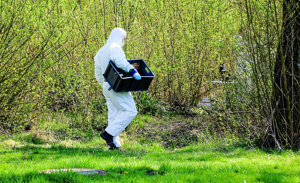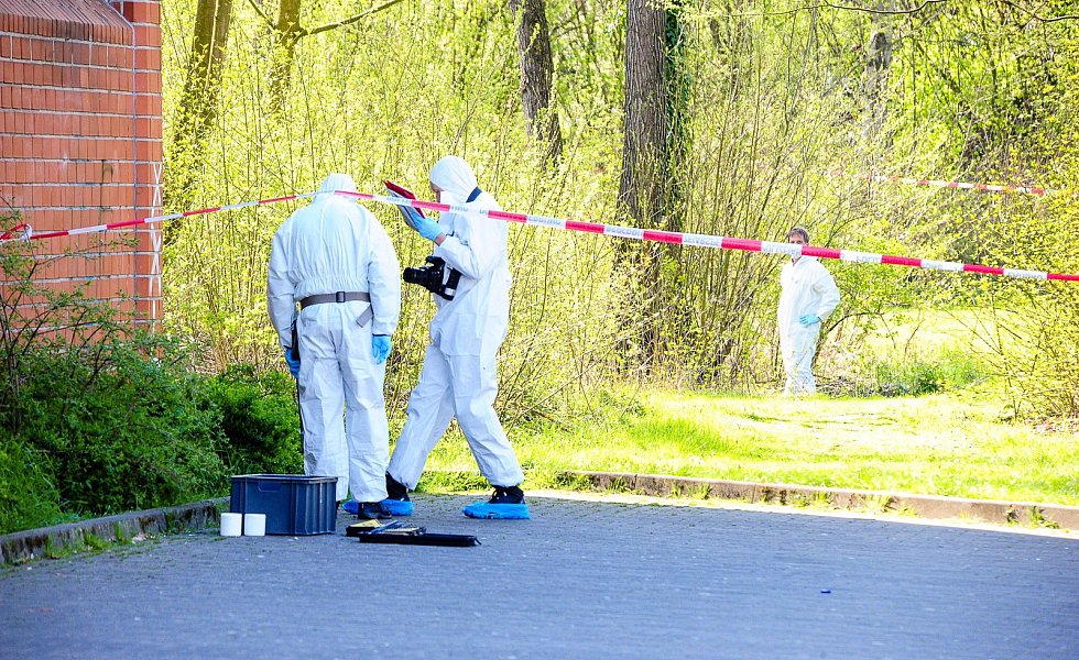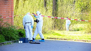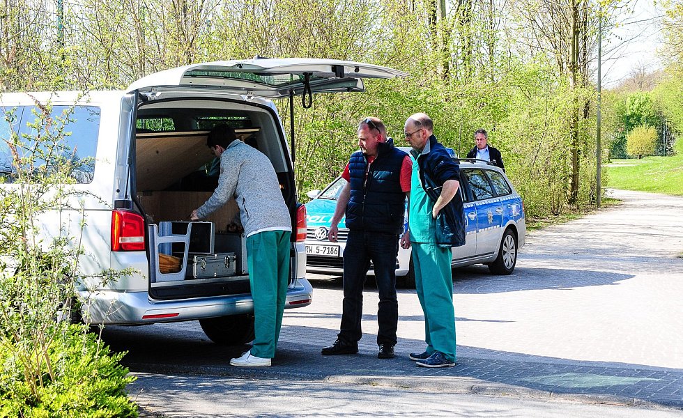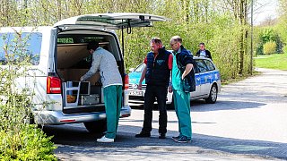 Ein Spaziergänger hat am Samstagvormittag in Delbrück die Leiche eines kleinen Mädchens gefunden. Mitarbeiter der Spurensicherung durchsuchten das Gelände.