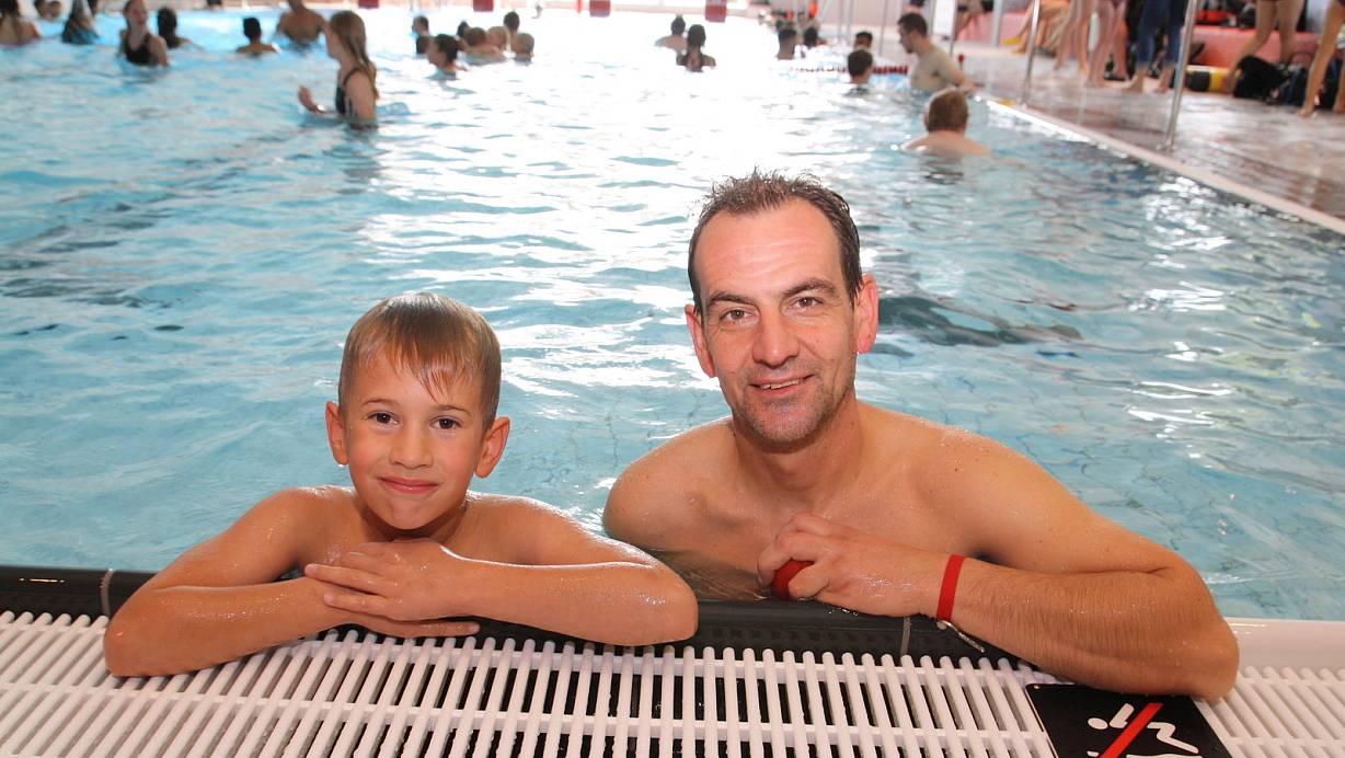 "Die Preise in Delbrück sind human": Uwe Höber aus Delbrück und sein achtjähriger Sohn Luca mussten in den letzten beiden Jahren auf andere Bäder ausweichen. | © Regina Brucksch