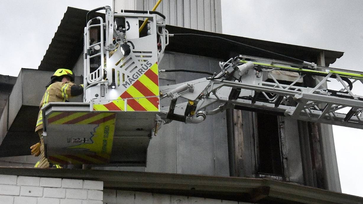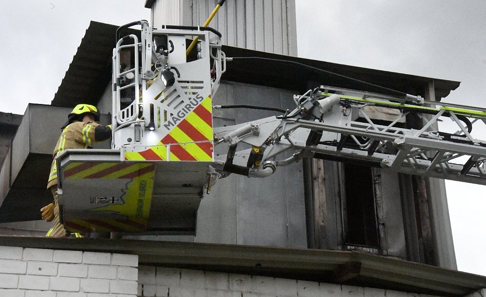 „Als ich hier als einer der Ernsten wenige Minuten nach dem Alarm eintraf, schlugen die Flammen schon aus den Druckentlastungsklappen im oberen Bereich der Anlage", berichtete der Einsatzleiter. „Wir hatten den eigentlichen Brand dann schnell unter Kontrolle", berichtete Fischer weiter. Die Drehleiter wurde in Stellung gebracht, von oben und von der Seite ein massiver Löschangriff durchgeführt. Eine leistungsfähige Wasserversorgung konnte durch den in unmittelbarer Nähe angezapften Hydranten sichergestellt werden.