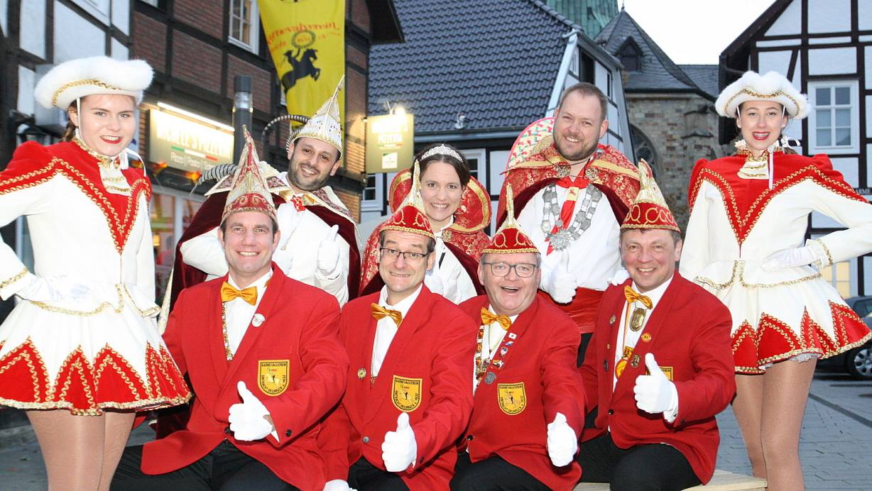 Sessionseröffnung: Die Delbrücker Karneval-Elite blickt der neuen Session fröhlich entgegen. | © Regina Brucksch