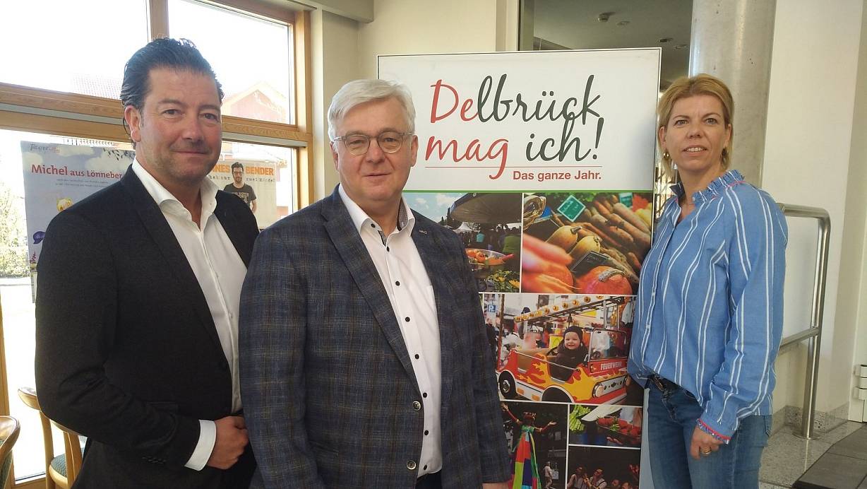 Die neue Spitze der Delbrücker Marketinggemeinschaft bilden (v. l.) die Vorsitzenden Johannes Dunschen und Albert Hansel mit Geschäftsführerin Britta Kuboth. | © Regina Brucksch