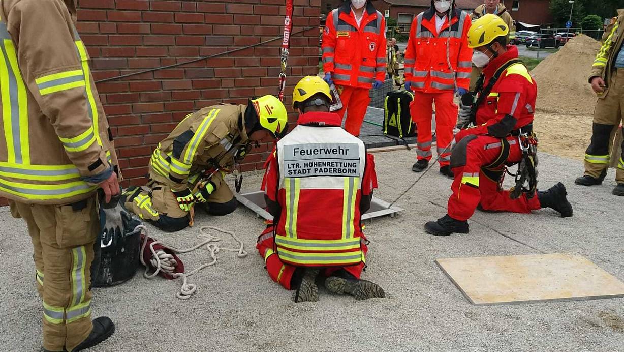 Der Mann war auf einer Baustelle mehrere Meter in die Tiefe gestürzt. Die Höhenrettung Paderborn musste alarmiert werden.