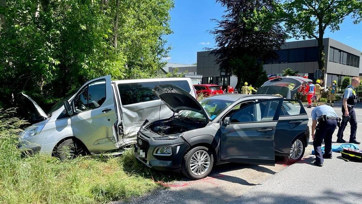 Um einen Auffahrunfall zu vermeiden, fuhr der Fahrer des Hyundai links am abbiegenden Ford Transit vorbei und rammte den Wagen auf der Fahrerseite.
