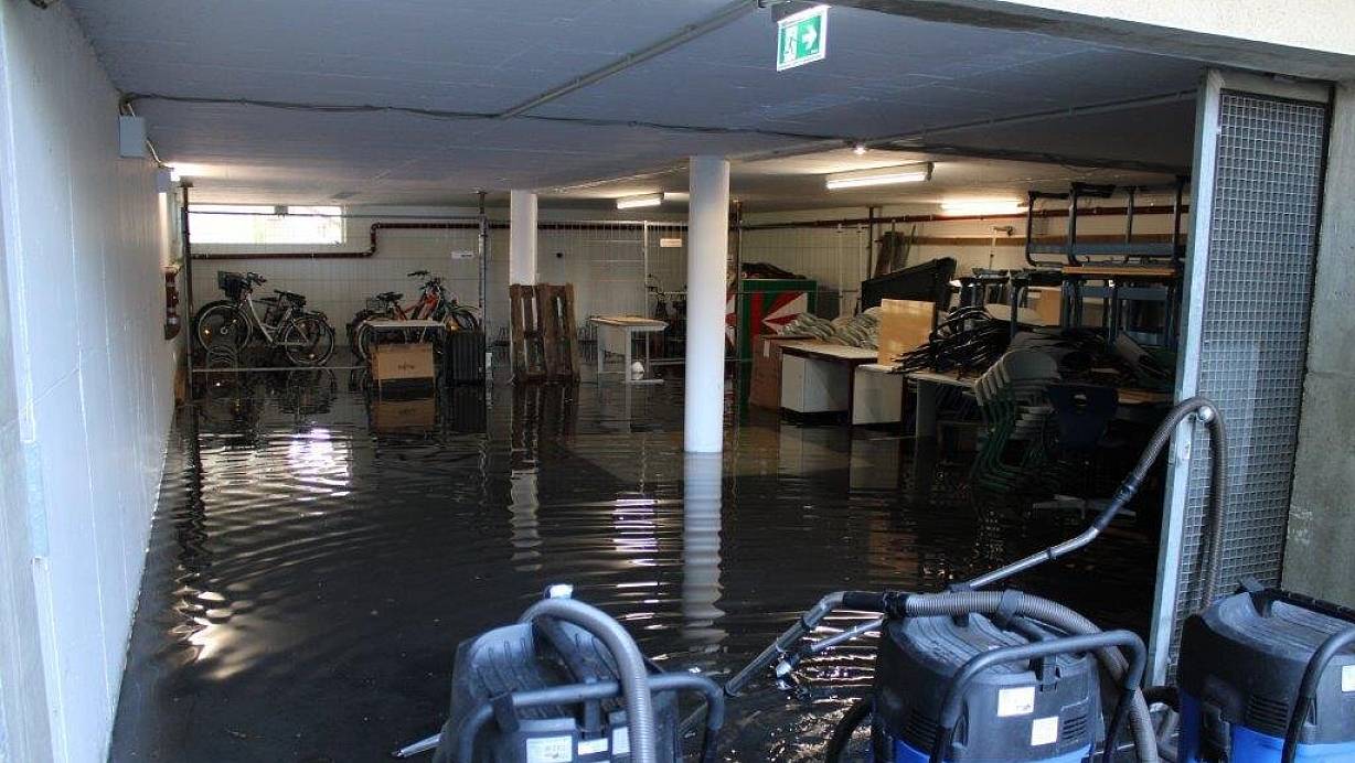 Der Wasserschaden beschädigte die Heizungsanlage der Delbrücker Gesamtschule. Das Wasser stand in Heizungsräumen zum Teil bis zu einen Meter hoch. | © Stadt Delbrück