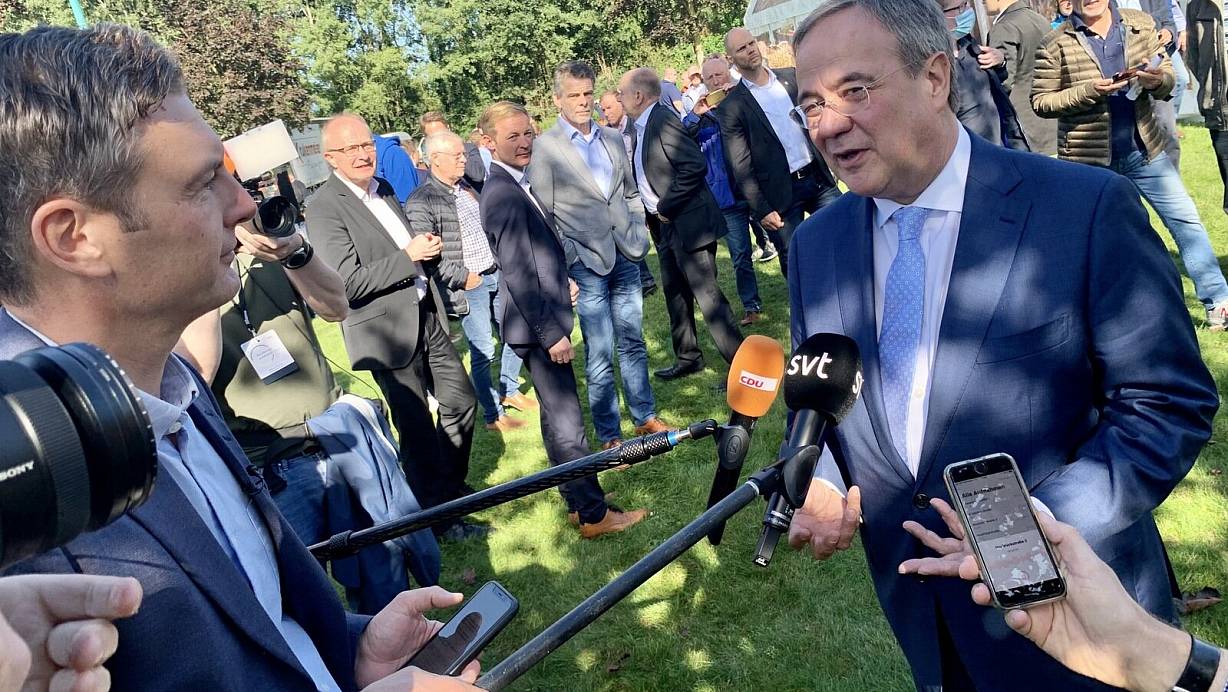 Botschaften nach Skandinavien sendet Laschet im Gespräch mit TV-Reporter Christoffer Wendick. | © Jens Reddeker