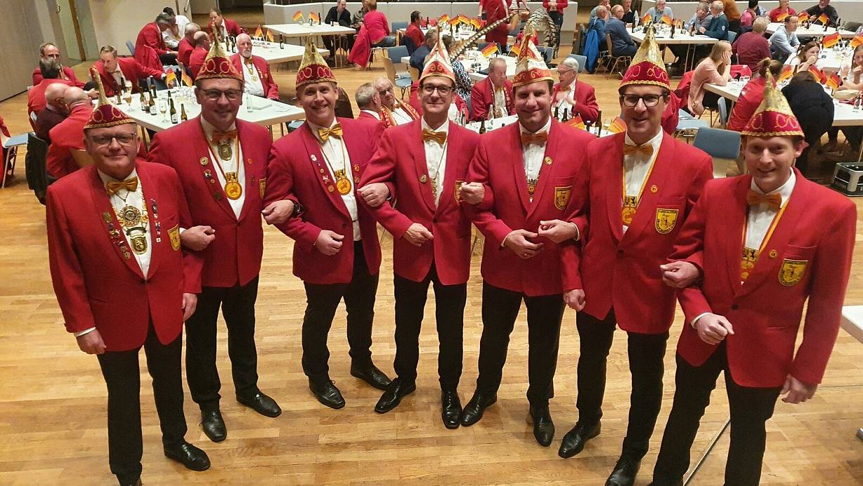 Der Vorstand mit Peter Josephs (v.l.), Lars Rodewald, Johannes Westerhorstmann, Ralf Brüggenthies, Peter Hartmann, Markus Berhorn und Georg Voss war bei der Sessions-Eröffnung noch guter Dinge. | © Regina Brucksch