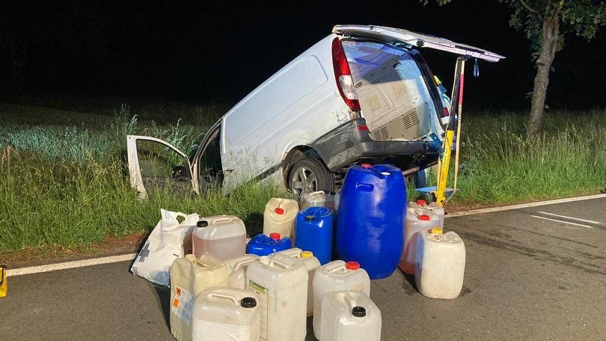 Anschließend prallte er gegen eine Leitplanke und rutschte in den Straßengraben. Dort konnten die Einsatzkräfte den 28 Jahre alten Fahrer und seine 20-jährige Beifahrerin festnehmen. Verletzt wurde niemand. Auf der Ladefläche des Lkw wurden 18 teilweise ausgelaufene Kanister mit Dieselkraftstoff aufgefunden. Am Lkw war ein nicht vergebenes Kennzeichen angebracht. Die Polizei stellte den Wagen sicher und fertigte Strafanzeigen wegen Kraftstoffdiebstahls, verbotenen Einzelrennens, Urkundenfälschung und wegen Fahrens ohne Fahrerlaubnis an.