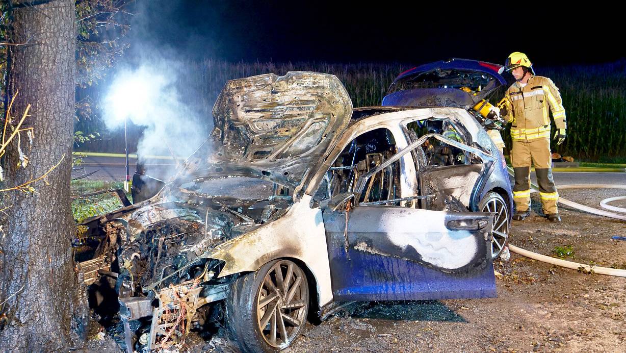 VW Golf prallt bei Delbrück gegen Baum und geht in Flammen auf