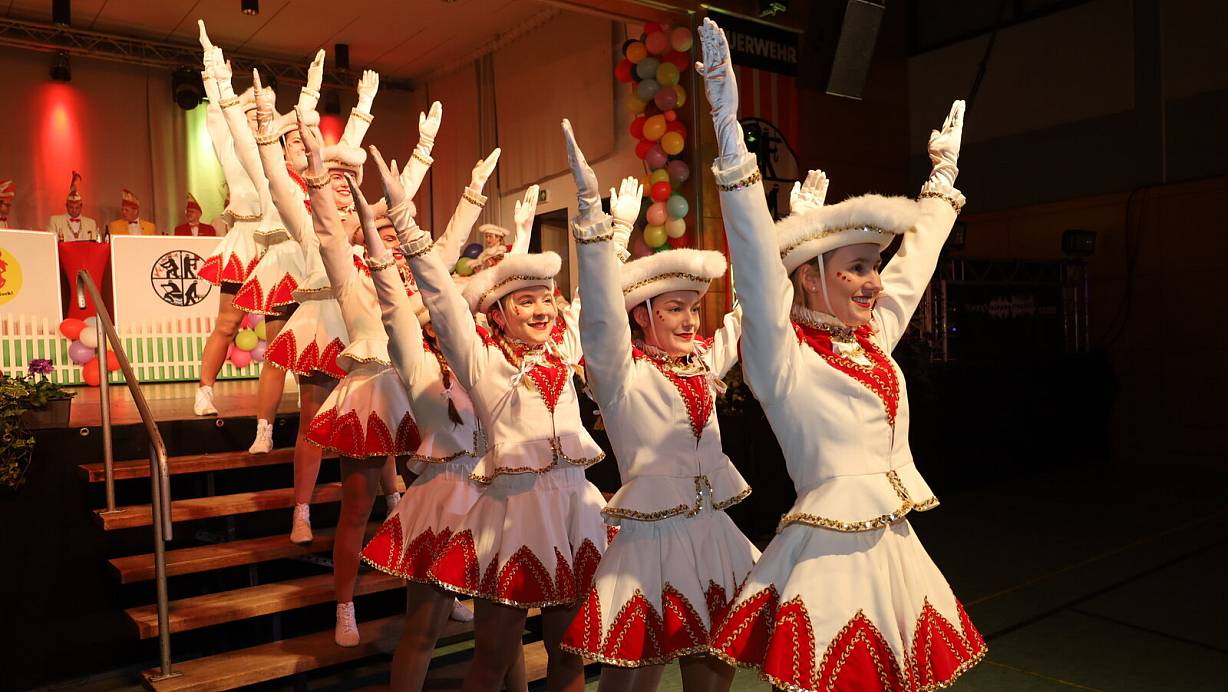 Die Jecken feiern in Ostenland bei ganz viel Musik und Showtanz. Für das Programm gibt es vom Publikum frenetischen Applaus - und einmal herrscht Kreisch-Alarm.