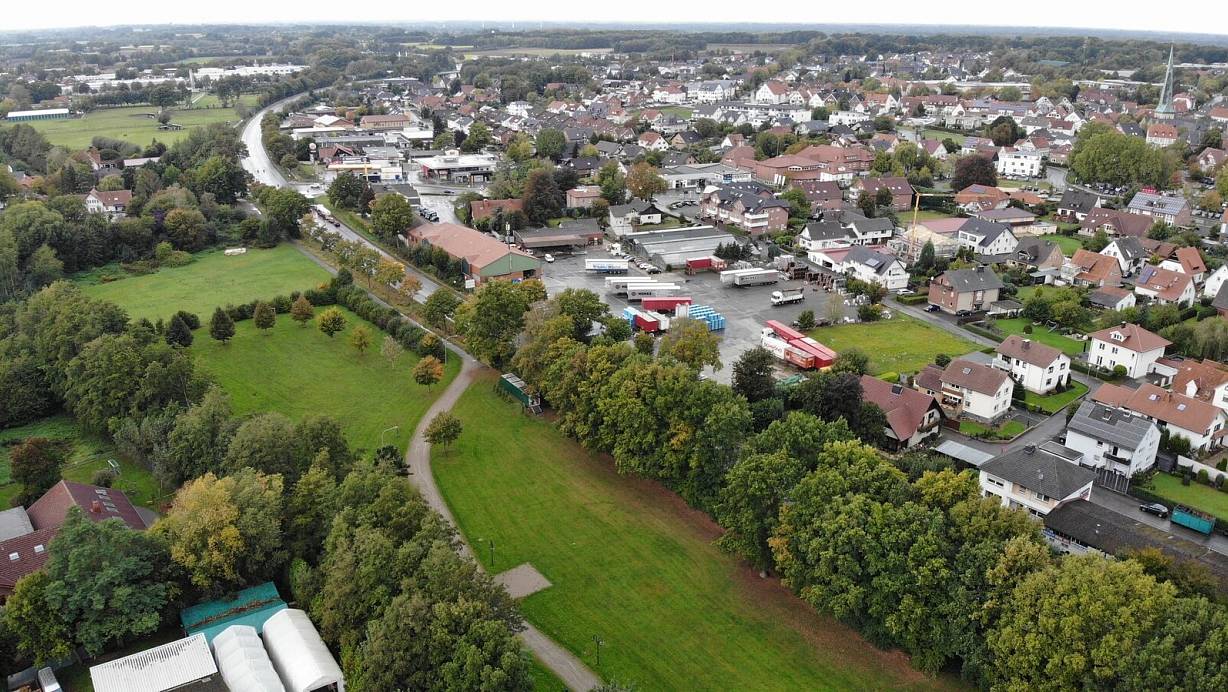 Die Rettungswache soll im oberen Teil der Grünfläche entlang der B 64 in Delbrück gebaut werden. | © Jens Reddeker