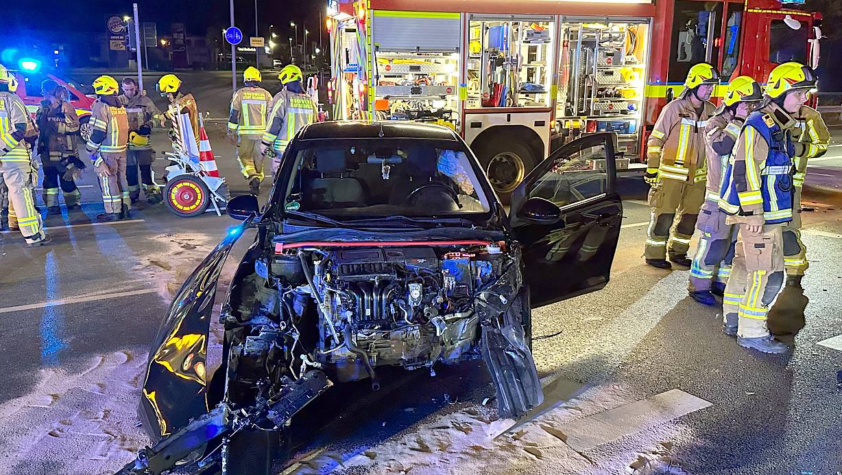 In der Nacht zu Donnerstag kam es zu einer Karambolage auf der Kreuzung Paderborner Straße (B64) und Boker Straße. Ein Großangebot an Rettungskräften war im Einsatz.