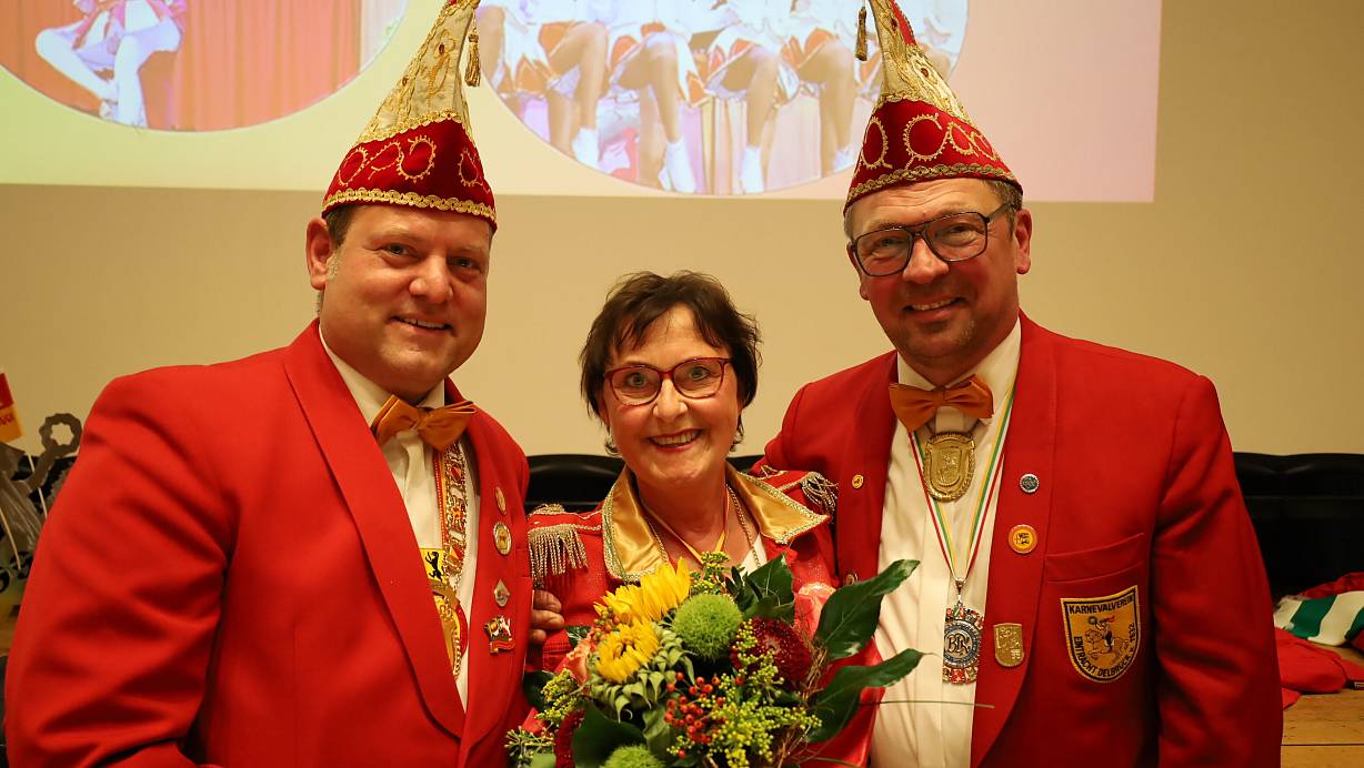 Der neue Eintracht-Chef Bernd Austerschmidt (l.) und sein Vize Lars Rodewald verabschieden Christiane Grothoff-Kowalewski als Sprecherin des Frauen-Elferrats. | © Regina Brucksch