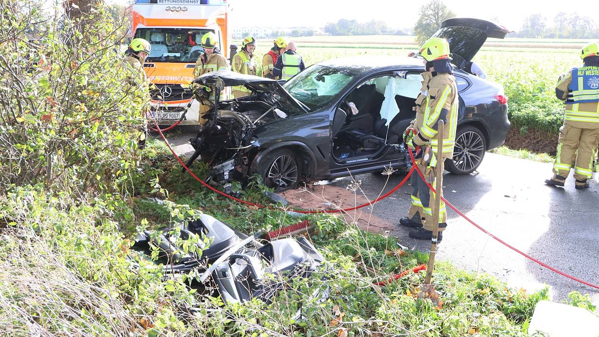Auto prallt vor zwei Bäume: 19-Jähriger wird bei Unfall nahe Delbrück schwer verletzt