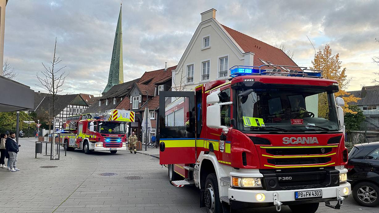 Die Feuerwehr Delbrück rückte am Sonntagnachmittag zu einem komplett eingenebelten Automatengeschäft am Alten Markt aus. | © Ralph Meyer