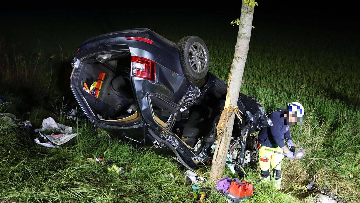 Das Fahrzeug kollidiert in der Nacht zunächst mit einem Baum und überschlägt sich dann. Der Fahrer überlebt den Unfall nicht. Sein Hund kann gerettet werden.