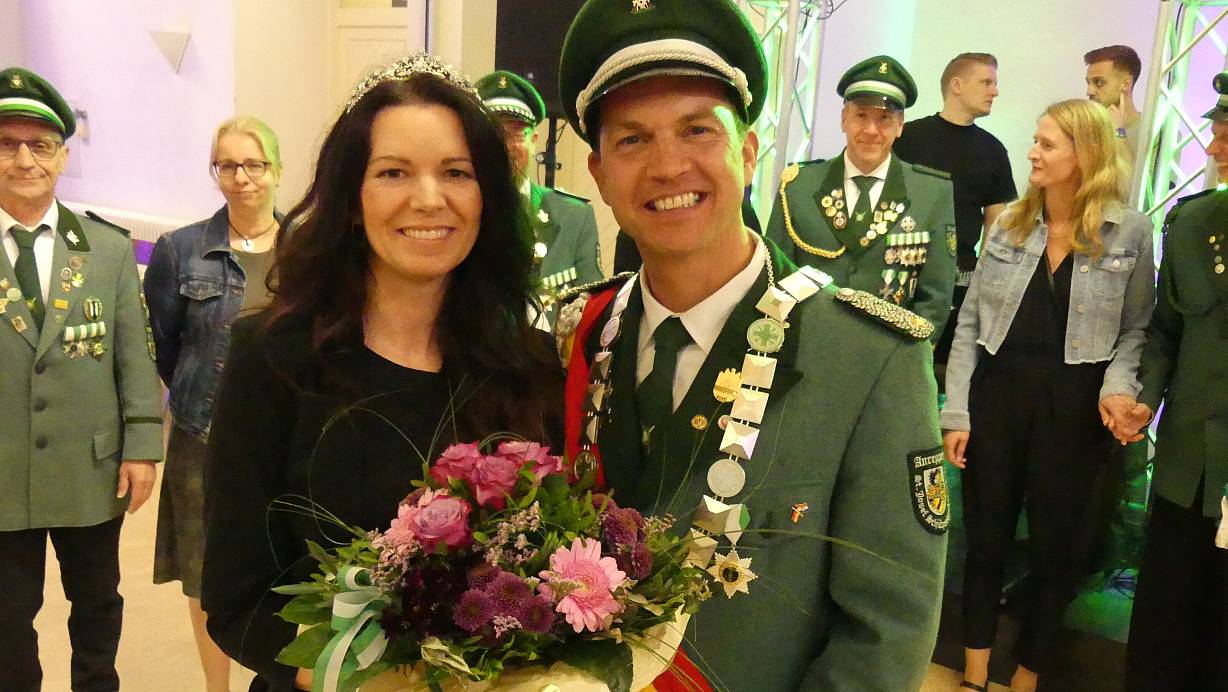 Delbrück-Anreppen. Rene Kress hat am Samstagabend mit der 127. Ladung Blei die Reste des Anreppener Schützenadlers von der Stange gefegt. Mit seiner 47-jährigen Frau Tanja besteigt der 45-Jährige den Thron der St.-Josef-Schützenbruderschaft.