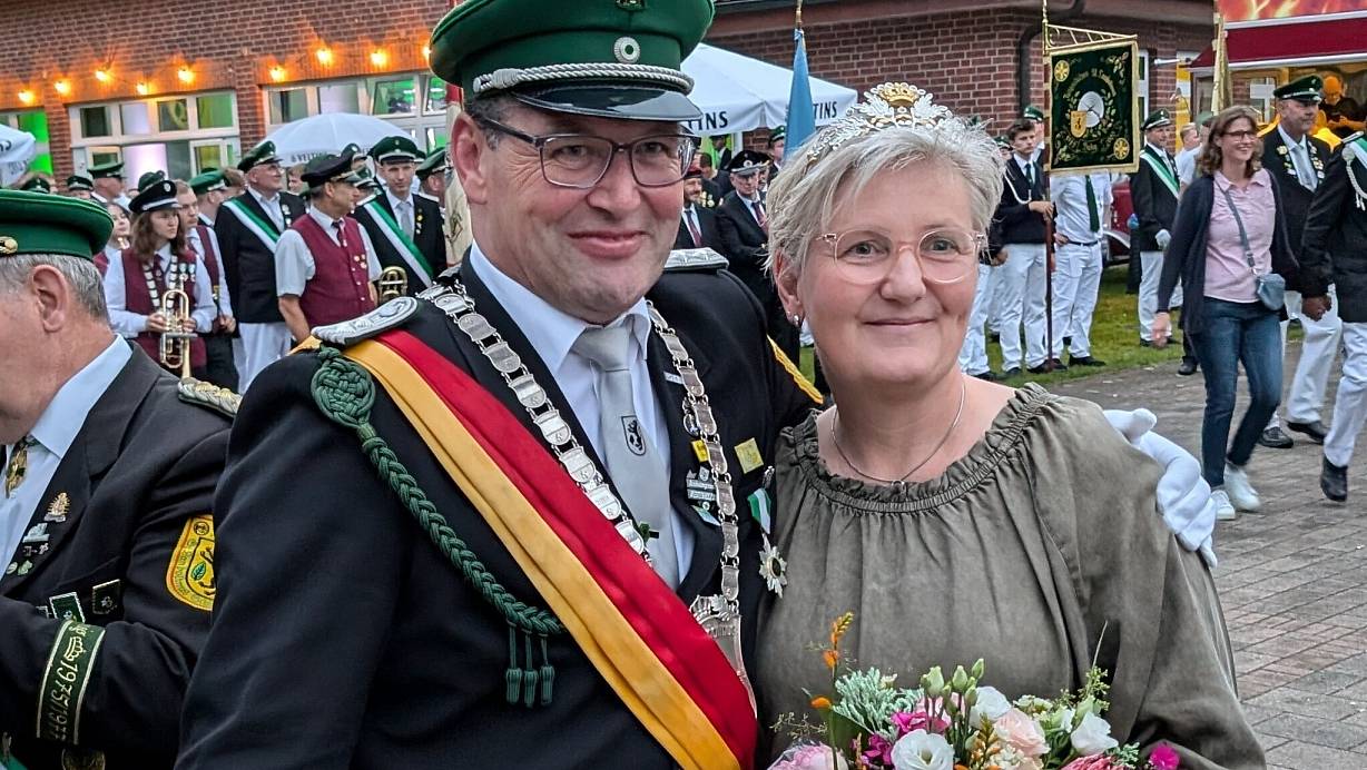 Delbrück-Boke. Der neue Schützenkönig der St.-Landolinus-Schützenbruderschaft Boke steht fest. Meinolf Berkemeier hat mit dem 137. Schuss am Samstagabend um 20.47 Uhr das Boker Schützenvolk erlöst und sich zum Regenten im Schützenjahr 2024/2025 gemacht. Zur Königin nahm er seine Frau Reinhild. Der stellvertretende Hauptmann nahm sich nach einer Schießpause ein Herz und zerlegte den Holzadler am Lippestrand.
