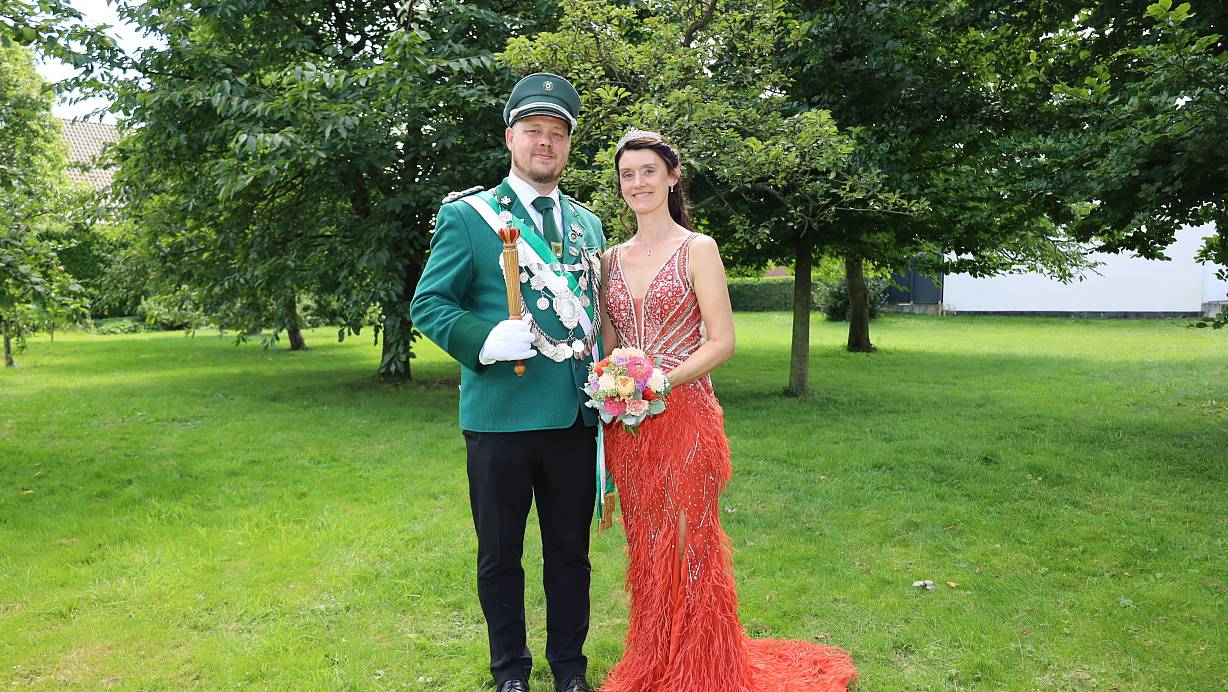 Für Pierre Richter und Jutta Richter-Gröne endet mit dem Schützenfest ein besonderes Jahr in dem Delbrücker Ortsteil. Der König muss die neue Kette abgeben.