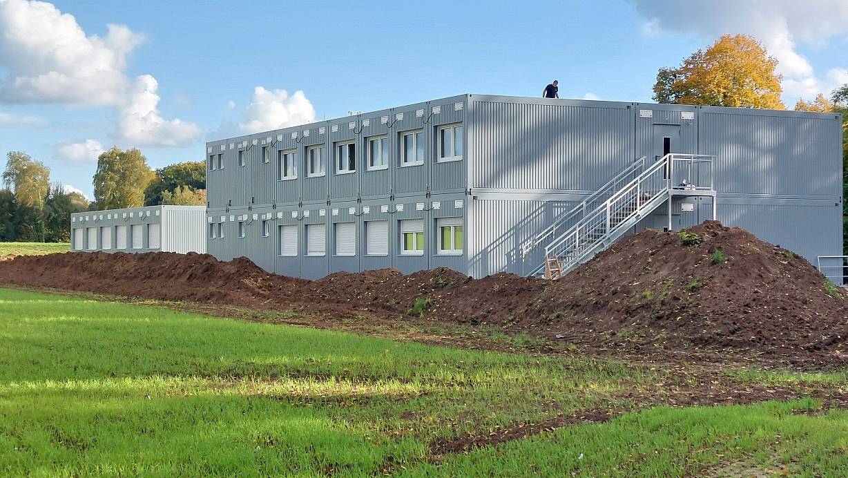 Die Containereinrichtung am Brinkweg in Nordhagen soll Mitte November fertiggestellt sein und 75 Menschen Platz bieten. Bis zu 500.000 Euro investiert die Stadt dafür aus eigenen Mitteln, knapp eine Million Euro kommen aus Fördertöpfen. | © Regina Brucksch