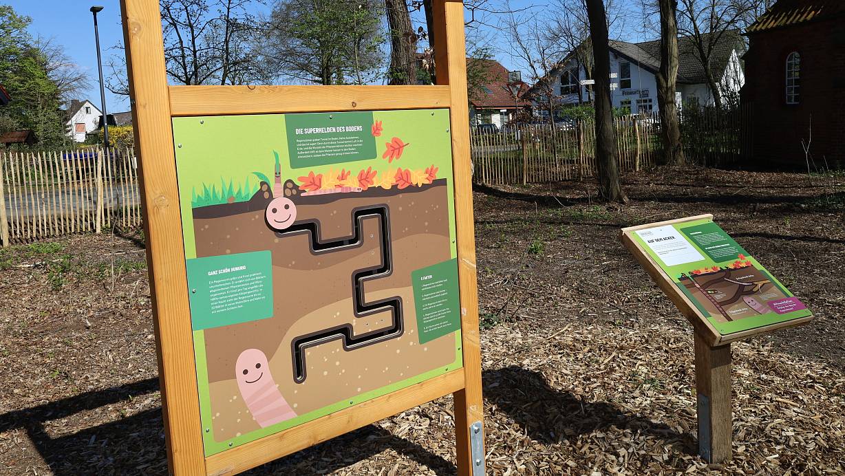 An dieser Tafel können Kinder lernen, warum Regenwürmer die Superhelden des Bodens sind. | © Regina Brucksch