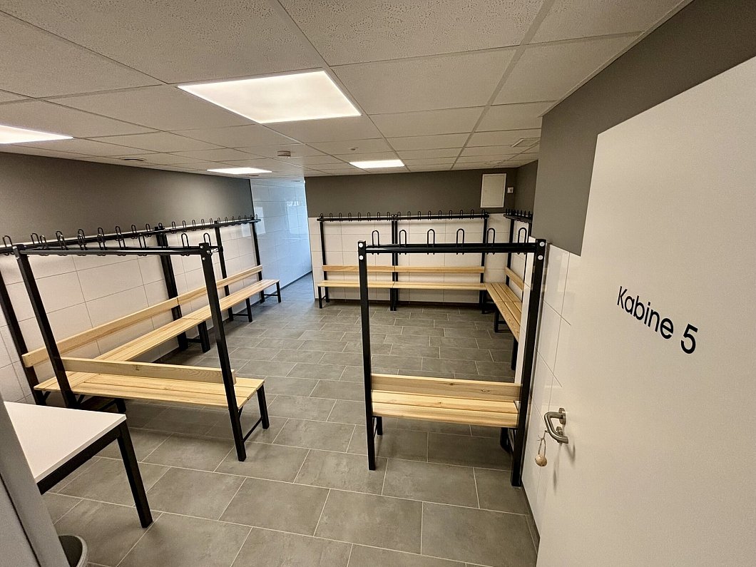 Entstanden ist ein Bau, in dem nun genug getrennter Raum für Umkleidekabinen der Bereiche Herren, Damen und Jugend samt Duschen ist. Eine Garage mit Nebenräumen sowie der eingeschossige alte Anbau des Vereinsheims wurden in Eigenleistung abgerissen und durch den zweigeschossigen Neubau ersetzt. Die Fassade des Anbaus gleicht sich mit weißem Putz an den Bestand an. Eine große Fensterfront ist zur Nord- und Ostseite entstanden.