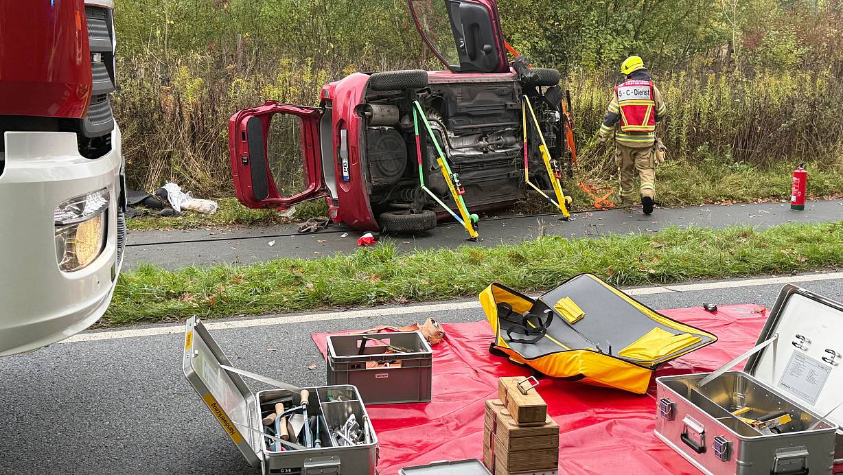 Dort sicherten die rund 25 Feuerwehrleute den Wagen gegen ein Umstürzen, retteten die eingeschlossene Frau auf dem Wrack und unterstützten den Rettungsdienst. Die 65-Jährige wurde vom Notarzt versorgt und anschließend ins Krankenhaus eingeliefert.