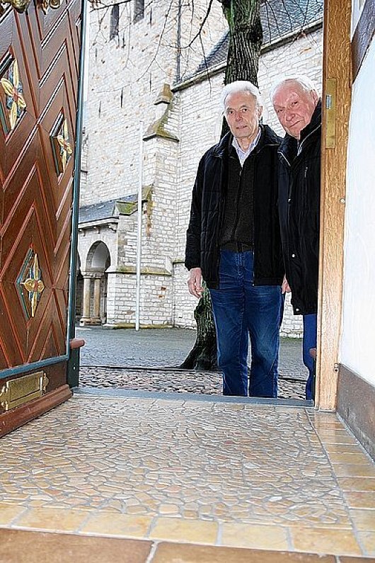 Delbrück. Nach mehr als 65 Jahren trafen sich Hubert Kösters und Josef Kückmann und erinnern sich lebhaft an die kleine Mauer und den Abwasserkanal am Kirchplatz gegenüber von der alten Mädchenschule – heute Kreuzapotheke.