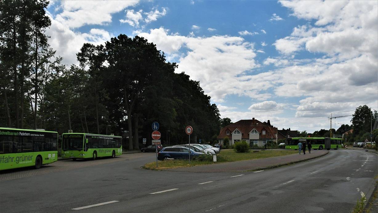 Wird sich verändern: Die derzeitige Bus-Wendeschleife mit Blickrichtung Ortsmitte. Von der Wendeschleife bis zum Bahnübergang wird die Sennestraße erneuert. | © Raphael Athens