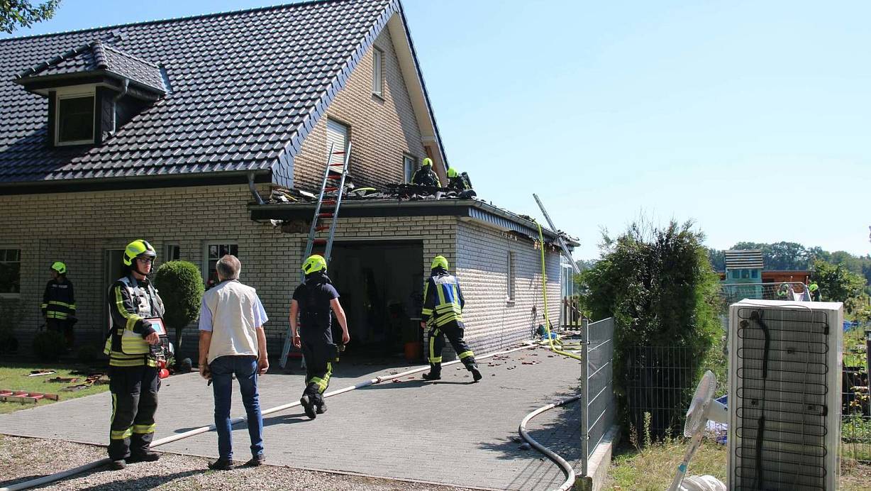 Die Flammen griffen von der Hecke auf das Dach der Garage über und schlugen an der Hausfassade hoch, sodass bei Eintreffen der Feuerwehr hohe Flammen aus der direkt an das Wohnhaus angrenzenden Garage schlugen. Mehrere Trupps gingen unter Atemschutz gegen das Feuer vor und es gelang der Feuerwehr, ein Übergreifen auf das Wohnhaus zu verhindern."Gott sei Dank konnten wir die Brandausbreitung verhindern", war Michael Kesselmeier froh, dass das Wohnhaus gerettet werden konnte. Auf einem Nachbargrundstück wurden Kinderspielgeräte in Mitleidenschaft gezogen. Ein Feuerwehrarzt untersuchte den 33-jährigen, der anschließend mit Verdacht auf eine Rauchgasvergiftung in ein Paderborner Krankenhaus kam.
