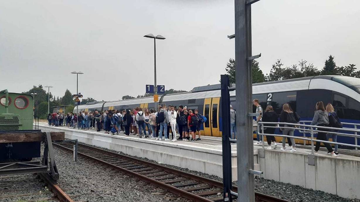 Am Hövelhofer Bahnhof warten morgens zahlreiche Schülerinnen und Schüler auf die Sennebahn nach Paderborn. | © Privat