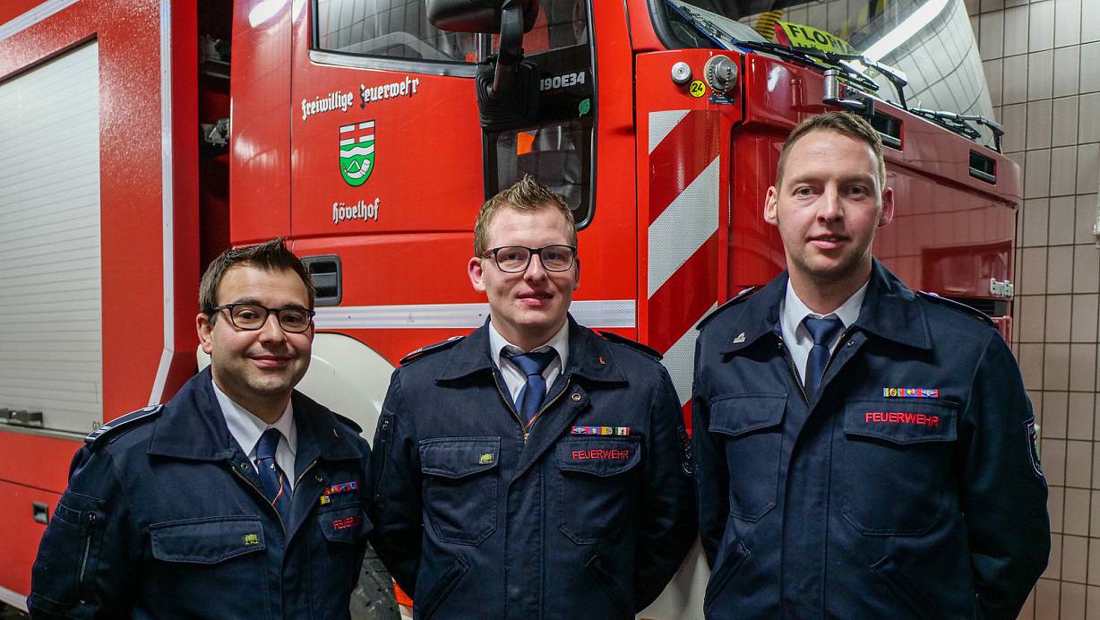 Die künftige Wehrführung: (v. l.). Patrick Falkenrich, Sebastian Lienen und Max Rempe. | © Ralph Meyer