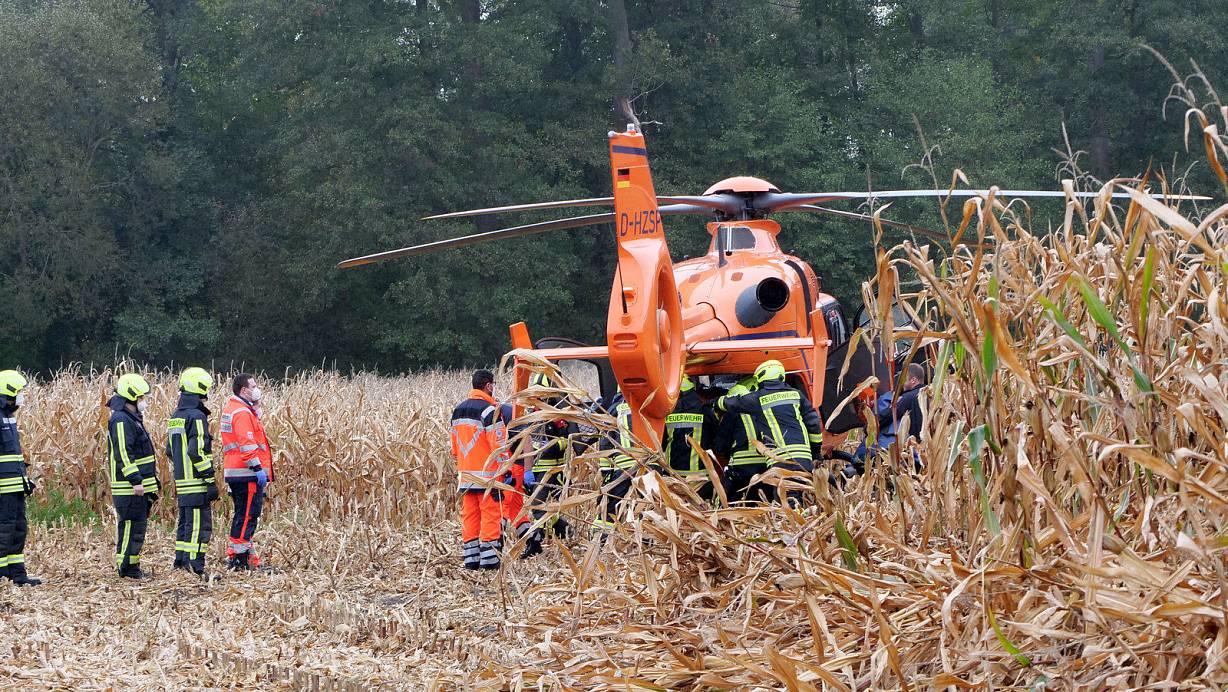 Mit dem Rettungshubschrauber Christoph 13 wird der Hövelhofer in eine Spezialklinik geflogen. | © Ralph Meyer