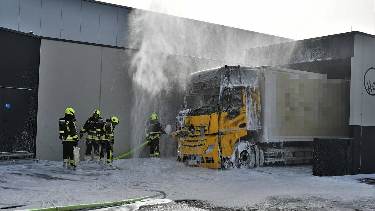 Die Einsatzkräfte konnten den Brand des Lkw am Montagmittag im rückwärtigen Bereich des Marktes schnell kontrollieren und löschen. | © Raphael Athens