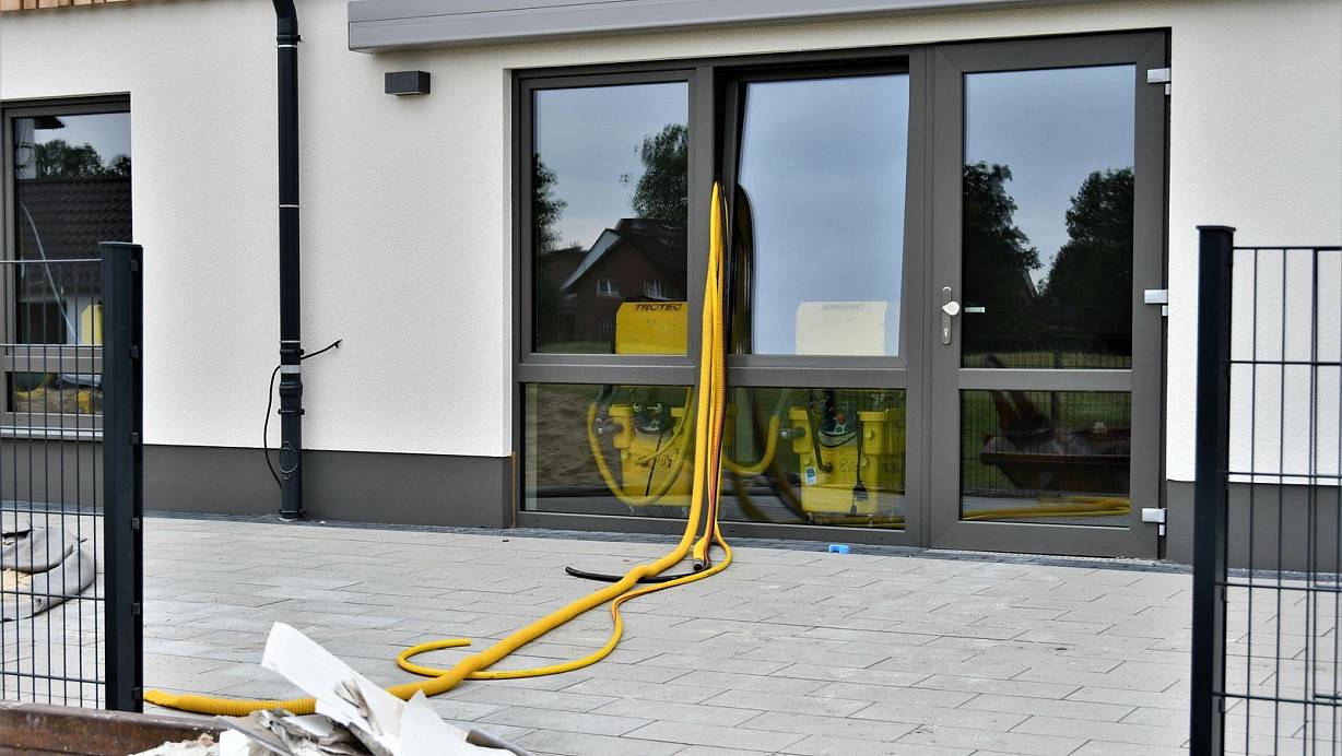 Die Trocknungsarbeiten in der neuen Hövelhofer Malteser-Kita laufen. | © Jens Reddeker