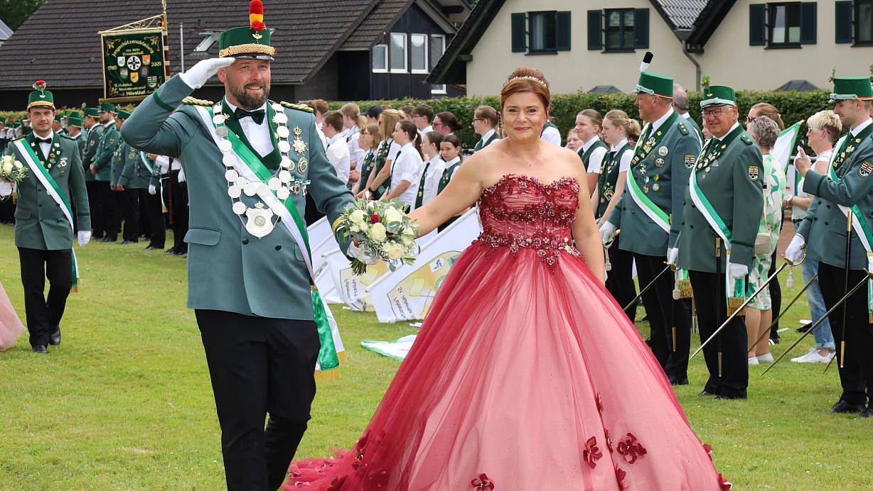 Beim großen Festumzug steht das Königspaar Dirk und Cornelia Berens im Mittelpunkt. Beim Schützenfest in der Sennegemeinde feiern alle Generationen mit.