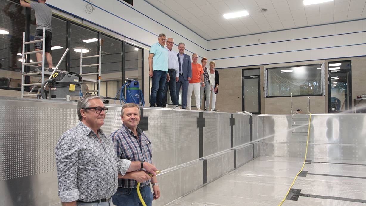 Das Millionenprojekt ist bald fertiggestellt. Symbolisch lassen Vertreter des Bau- und Fördervereins schon Wasser einlaufen. Was die Besucher erwartet und wann offiziell dort geschwommen werden kann.