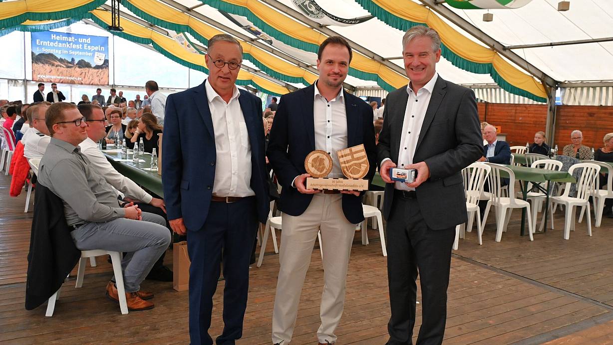 AGN-Initiator Georg Schneider (l.) beging das Jubiläumsfest auch mit dem neuen Vorsitzenden Thorsten Dahm und Hövelhofs Bürgermeister Michael Berens. | © Raphael Athens