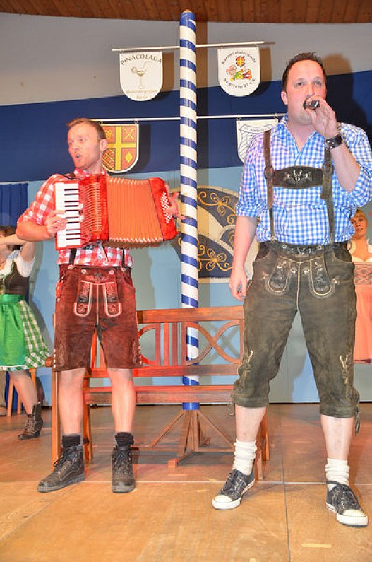 Zu dem Lied "Rock me heut Nacht" stand ein noch nie da gewesener Maibaum auf der Bühne und die Damen von "Pina Colada", diesmal angeführt von Michael Kemper und Sven Jost, sorgten in bayrischen Dirndln und Trachten tanzend auch bei den über 800 Närrinnen und Narren im Publikum für Stimmungsraketen.