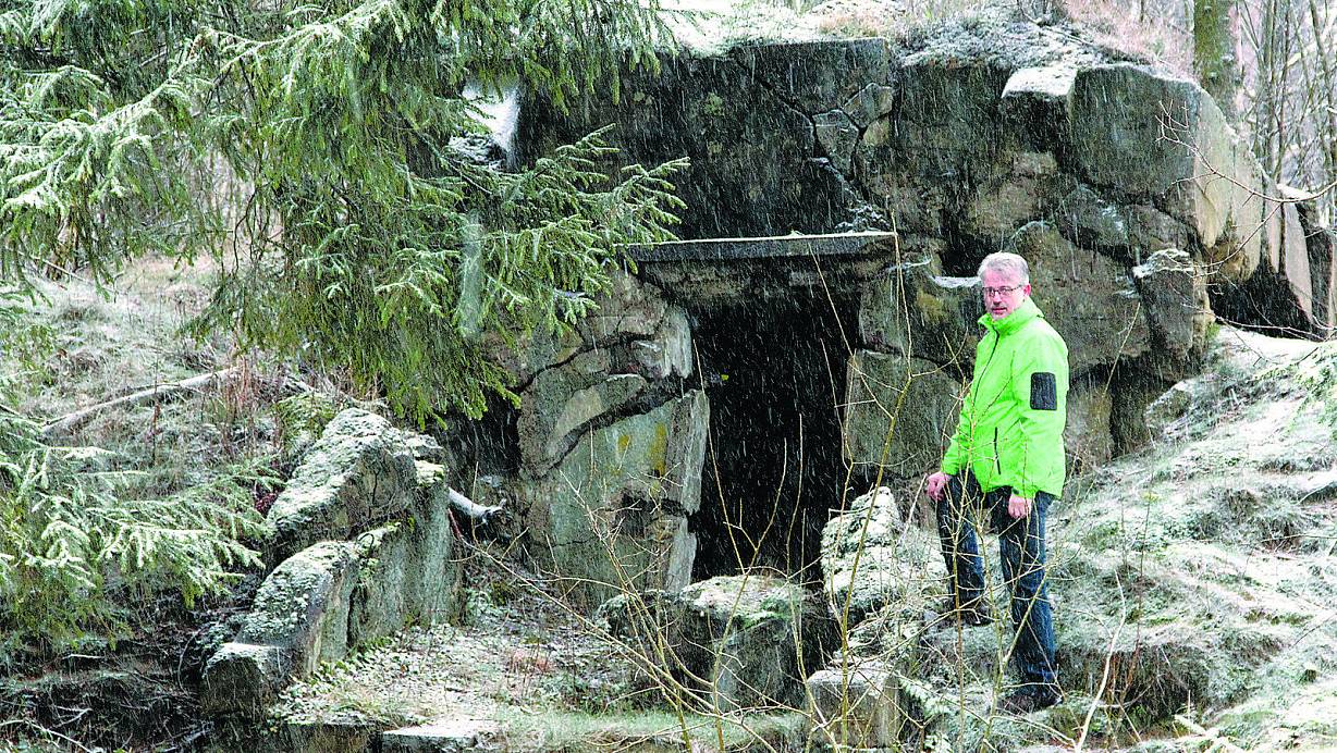 Im Wald selbst sind an vielen Stellen fast kreisrunde Wasserlöcher zu sehen. "Bombentrichter", sagt Bauamtsleiter Franz-Josef Manegold. Mannshohe Wälle deutet er als Aufschüttungen der unterirdischen Tanks.