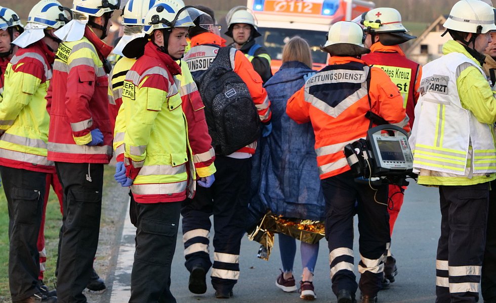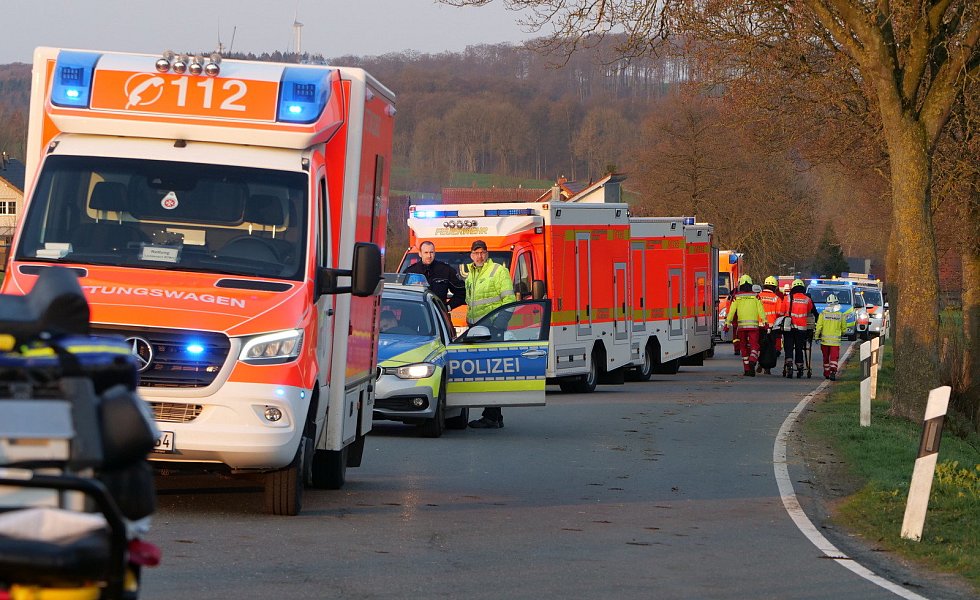 Auch drei Rettungshubschrauber wurden angefordert: Maschinen aus Bielefeld und Kassel landeten an der Unfallstelle. Eine Person wurde in ein Krankenhaus nach Bielefeld geflogen. Der Einsatz des dritten Rettungshubschraubers wurde abgebrochen.