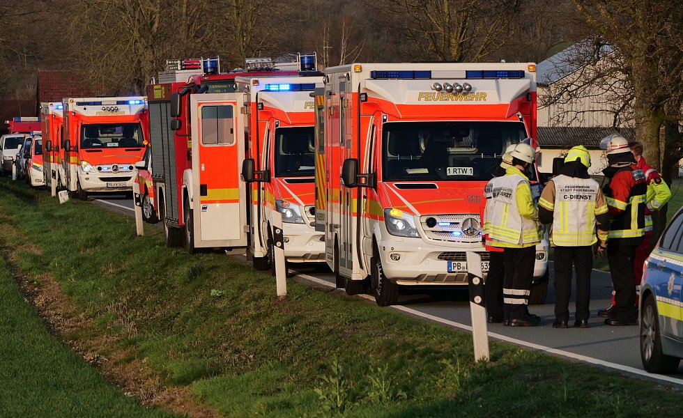 Feuerwehr und Rettungskräfte waren mit einem Großaufgebot vor Ort. Unter anderem versorgten vier Notärzte, drei Feuerwehrärzte und weitere Mediziner aus dem Raum Lichtenau die Verletzten in einer Sammelstelle und einem improvisierten Behandlungsplatz.