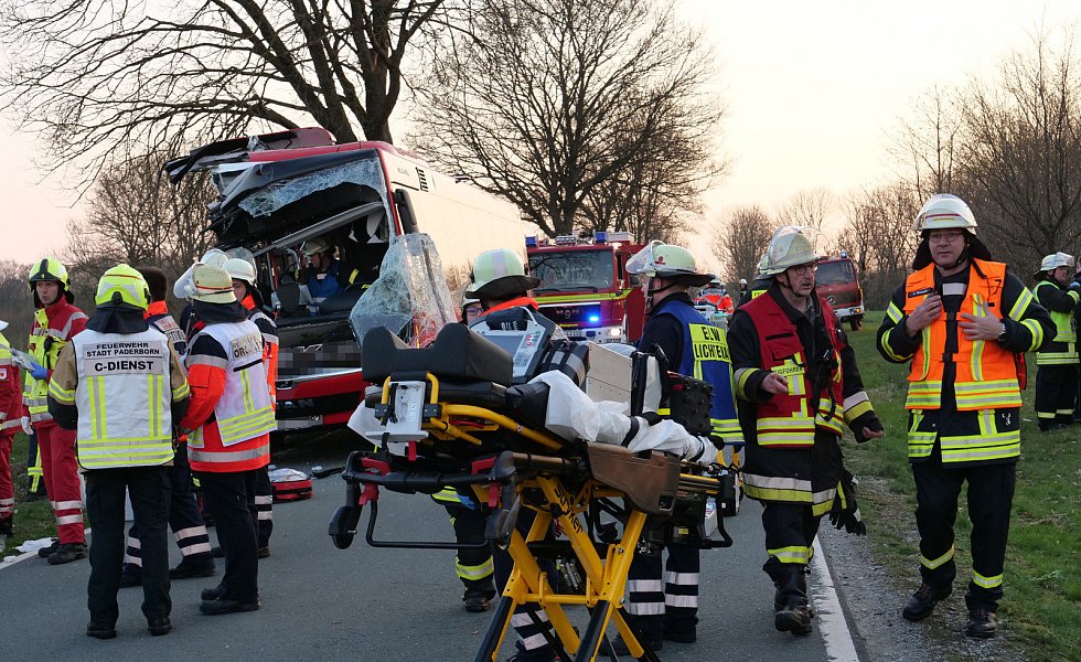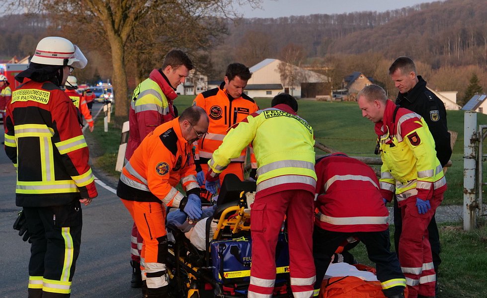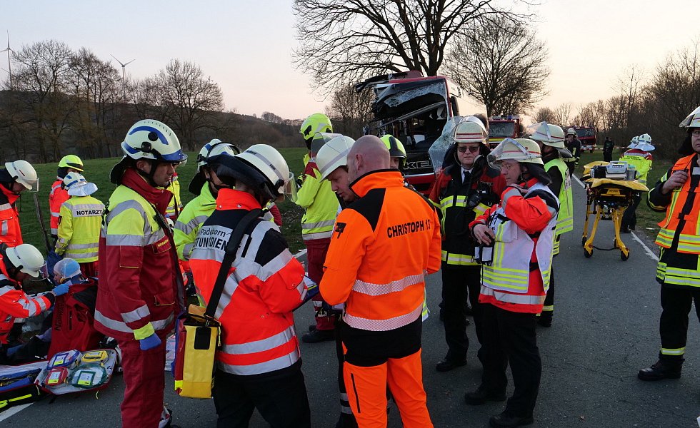 Im Einsatz waren elf Rettungs- und zwei Krankentransportwagen, dazu zwei Gerätewagen San der Johanniter und des Deutschen Roten Kreuzes. Auch der Abrollbehälter Rettung der Kreises Paderborn stand in Bereitschaft. In den Nachbarkreisen standen weitere Mediziner mit Fahrzeugen auf Abruf in Bereitschaft. Die Verletzten wurden in Krankenhäuser nach Paderborn, Salzkotten, Bad Driburg, Warburg, Marsberg und Bielefeld gefahren.